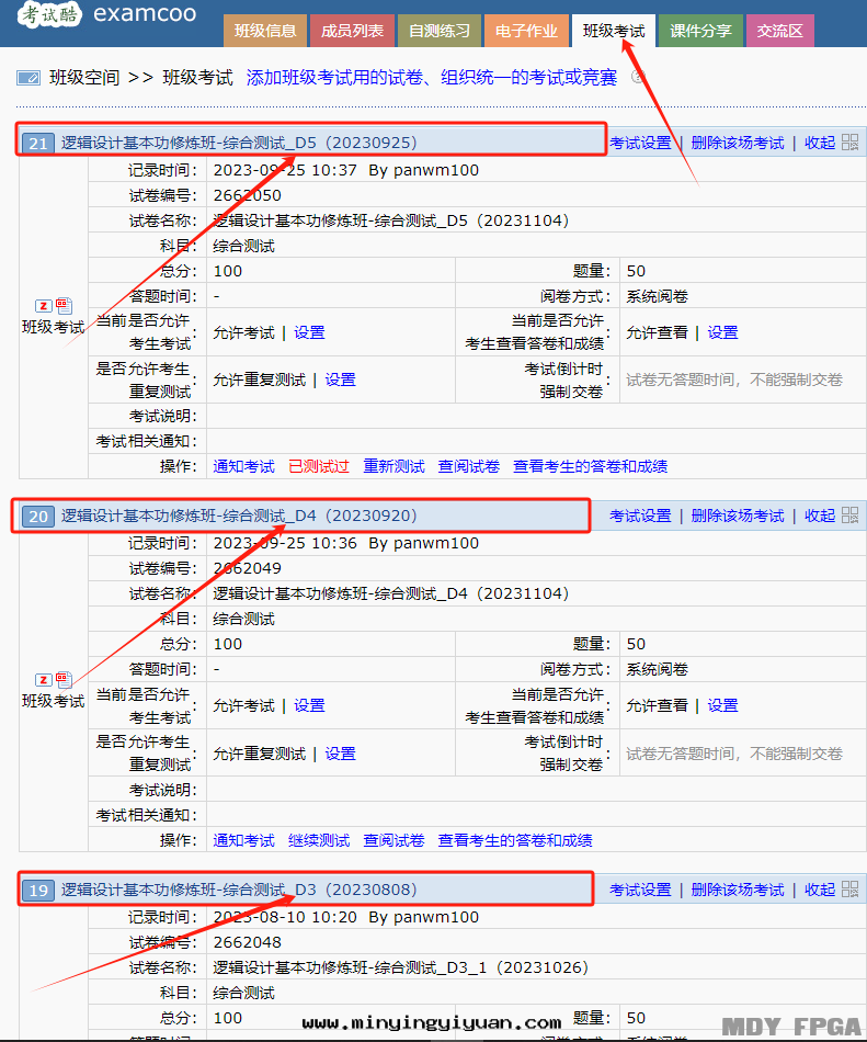 温(wēn)馨提(tí)升(shēng):明(míng)德揚在(zài)2023年(nián)傾力打(dǎ)造了(le)一(yī)門(mén)全(quán)新的(de)課程——邏輯設計(jì)基本(běn)功修煉課。此(cǐ)課程致(zhì)力于(yú)降低学習FPGA的(de)難度(dù),同(tóng)时(shí)增加学習的(de)乐(lè)趣。为(wèi)了(le)讓学生(shēng)能(néng)够更(gèng)好(hǎo)地(dì)掌握知識,明(míng)德揚還(huán)特(tè)别組織了(le)考試赢積分(fēn)活動(dòng)。考試能(néng)够幫助学生(shēng)们(men)查漏補缺,檢验(yàn)一(yī)周的(de)学習效果(guǒ)。成(chéng)績优秀的(de)同(tóng)学,我(wǒ)们(men)优先(xiān)推薦給(gěi)用(yòng)人(rén)單位哦!