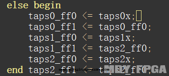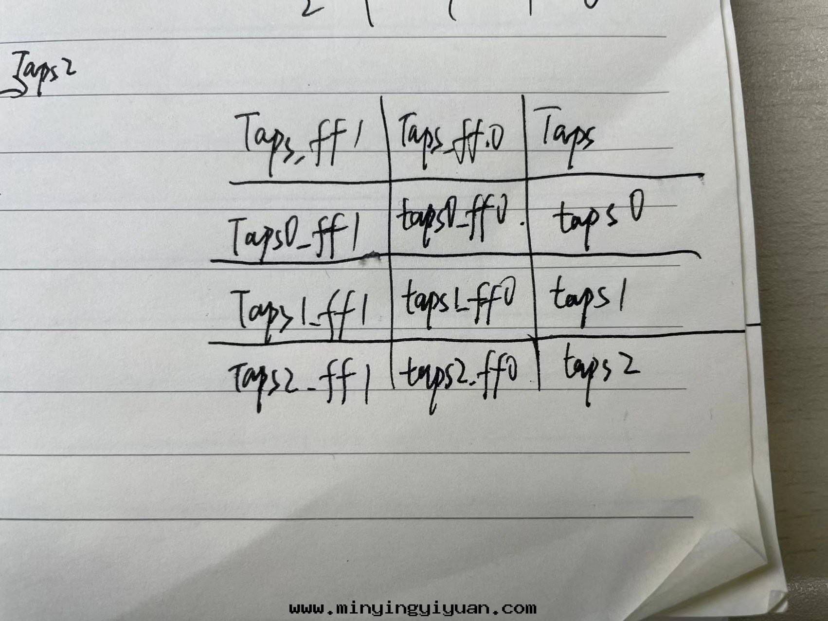 答(dá):沒(méi)有(yǒu) ff0就(jiù)是(shì)表(biǎo)示 延时(shí)一(yī)拍的(de)意(yì)思(sī),taps0_ff是(shì)taps0前(qián)一(yī)时(shí)刻的(de)值,需要(yào)得到(dào)这(zhè)種(zhǒng)結果(guǒ),就(jiù)是(shì)通(tòng)过(guò)时(shí)序邏輯打(dǎ)一(yī)拍,資料提(tí)供的(de)有(yǒu)直(zhí)播課講解(jiě),建議結合仿真(zhēn)波(bō)形去(qù)看(kàn),测試文(wén)件(jiàn)有(yǒu)提(tí)供