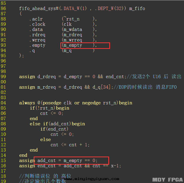 答(dá):这(zhè)个(gè)X是(shì)表(biǎo)示并串轉(zhuǎn)換的(de)次(cì)數。FIFO輸出(chū)的(de)Q是(shì)32位,正(zhèng)常情(qíng)況下(xià),是(shì)有(yǒu)4个(gè)字(zì)节(jié)的(de)有(yǒu)效數據(jù),因(yīn)此(cǐ)x=4。但有(yǒu)一(yī)个(gè)情(qíng)況,在(zài)包(bāo)文(wén)的(de)最(zuì)後(hòu)一(yī)个(gè)數據(jù)时(shí),有(yǒu)可(kě)能(néng)是(shì)只(zhī)有(yǒu)1字(zì)节(jié)、或(huò)者(zhě)2字(zì)节(jié)、或(huò)3字(zì)节(jié),或(huò)4字(zì)节(jié)有(yǒu)效,这(zhè)个(gè)有(yǒu)效多(duō)少(shǎo)是(shì)取(qǔ)決于(yú)mdy的(de)值(經(jīng)过(guò)FIFO後(hòu),即是(shì)Q的(de)33和(hé)32位)。可(kě)以(yǐ)代(dài)入(rù)數據(jù)可(kě)以(yǐ)看(kàn)到(dào)x的(de)值。例如(rú):當q[33:32]=1时(shí),表(biǎo)示有(yǒu)1字(zì)节(jié)无效,即3个(gè)字(zì)节(jié)有(yǒu)效,所(suǒ)以(yǐ)此(cǐ)时(shí)x等于(yú)3。