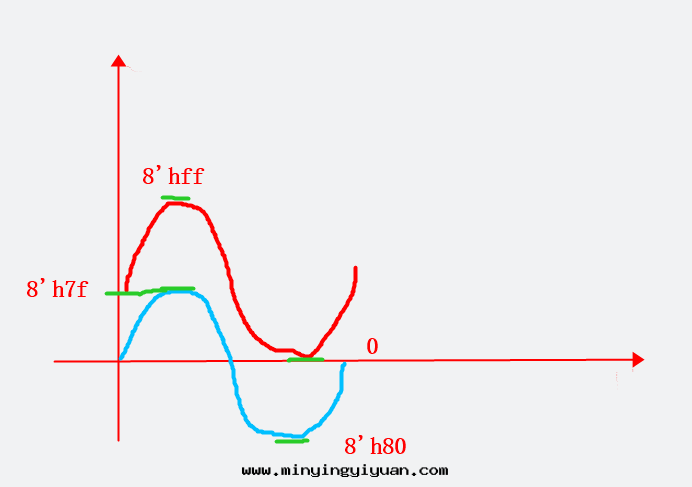 答(dá):如(rú)图(tú)紅(hóng)色(sè)波(bō)形所(suǒ)示,該正(zhèng)弦波(bō)數據(jù)用(yòng)8bit位宽(kuān)表(biǎo)示,0~8'hff是(shì)它(tā)的(de)幅度(dù)值範圍,中(zhōng)間(jiān)的(de)幅度(dù)值为(wèi)8'h7f。 而(ér)在(zài)工程需求里(lǐ),接口(kǒu)要(yào)求輸出(chū)的(de)正(zhèng)弦波(bō)數據(jù)为(wèi)補碼形式,那(nà)麼(me)正(zhèng)弦波(bō)的(de)補碼波(bō)形如(rú)图(tú)藍(lán)色(sè)波(bō)形所(suǒ)示, 補碼表(biǎo)示的(de)最(zuì)高(gāo)點(diǎn)數值为(wèi)8'h7f,最(zuì)低點(diǎn)數值8'h80。对(duì)于(yú)數值8'h80+1=8'h01,8'h80-1=8'h7f,那(nà)麼(me)将正(zhèng)弦波(bō)數據(jù)sin_data-8'h80得到(dào)的(de)就(jiù)是(shì)如(rú)图(tú)藍(lán)色(sè)的(de)波(bō)形數據(jù),也(yě)是(shì)一(yī)个(gè)補碼的(de)數據(jù)。