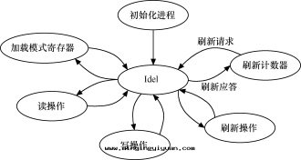 SDRAM的(de)读(dú)写控制也(yě)可(kě)以(yǐ)由(yóu)如(rú)图(tú)7.34所(suǒ)示的(de)读(dú)写狀态機(jī)表(biǎo)示。