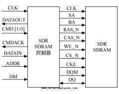 在(zài)上(shàng)图(tú)中(zhōng),控制器右(yòu)端接口(kǒu)信(xìn)号(hào)均为(wèi)直(zhí)接與(yǔ)SDRAM 对(duì)應(yìng)管(guǎn)脚相連(lián)的(de)信(xìn)号(hào)