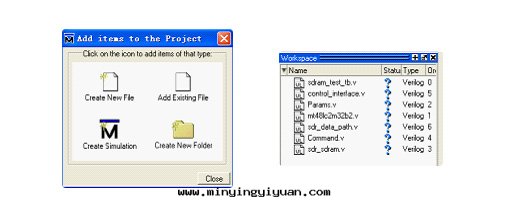 若要(yào)創建新的(de)文(wén)件(jiàn)就(jiù)選擇【Create New File】图(tú)标(biāo),若要(yào)添加已經(jīng)存在(zài)的(de)文(wén)件(jiàn)就(jiù)選擇【Add Existing File】图(tú)标(biāo),如(rú)图(tú)7.36所(suǒ)示。本(běn)实例中(zhōng)使用(yòng)已經(jīng)存在(zài)的(de)SDRAM控制器源文(wén)件(jiàn)作为(wèi)設計(jì)輸入(rù),添加後(hòu),在(zài)Workspace浏覽器中(zhōng)可(kě)以(yǐ)看(kàn)到(dào)如(rú)下(xià)图(tú)的(de)設計(jì)輸入(rù)列表(biǎo)。