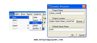 如(rú)下(xià)图(tú)所(suǒ)示,在(zài)Modelsim中(zhōng)創建新工程,并設置工程的(de)相關(guān)屬性(xìng)。