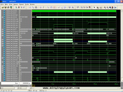 添加後(hòu),ModelSim将会(huì)自(zì)動(dòng)打(dǎ)開(kāi)一(yī)个(gè)波(bō)形观察器,并将頂层测試模块(kuài)的(de)所(suǒ)有(yǒu)寄存器和(hé)接口(kǒu)添加進(jìn)去(qù)。回(huí)到(dào)ModelSim的(de)界面(miàn),在(zài)命令輸入(rù)窗(chuāng)口(kǒu)中(zhōng)鍵入(rù)“run 20us”,開(kāi)始執行仿真(zhēn),如(rú)下(xià)图(tú)所(suǒ)示。